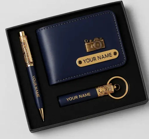 CUSTOMISED WALLET PEN KEYCHAIN AND BOTTEL COMBO SET FOR GIFTING SOMEONE SPECIAL
